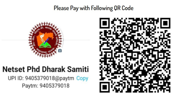 Transfer in Below Bank Account - Account Name : NET-SET PH.D.DHARAK SAMITI Bank Name : HDFC Bank IFSC Code : HDFC0000900 Account Number : 50200077619870
